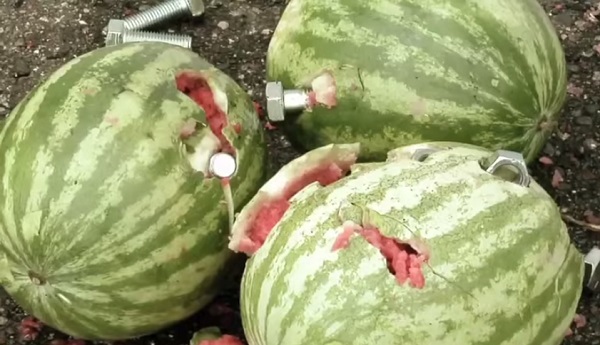 As these unfortunate watermelons found out, even small items (such as nuts and bolts) can do a lot of damage when dropped from height!