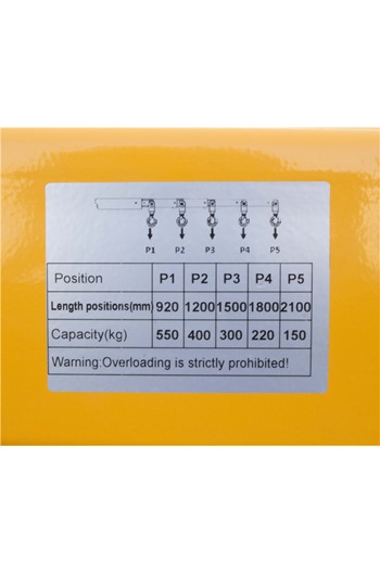 This counterbalance floor crane has 5 x variable capacity settings along different positions on the telescopic jib: