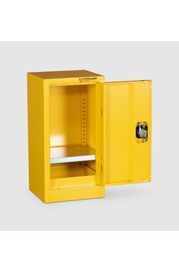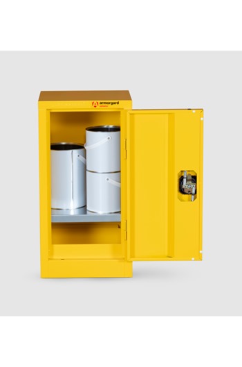 - BrandArmorgardProduct Weight13kgProduct ColourYellowProduct FinishPowder CoatedMaterial and Thickness 0.9mm SteelWidth340mmDepth 330mmHeight 700mmInternal Dimensions (W x D x H) 340mm x 240mm x 640mmSuitable For Indoor Storage of Flammables or ChemicalsQuantity of Keys2 KeysQuantity of Shelves 1 ShelfAdditional Info