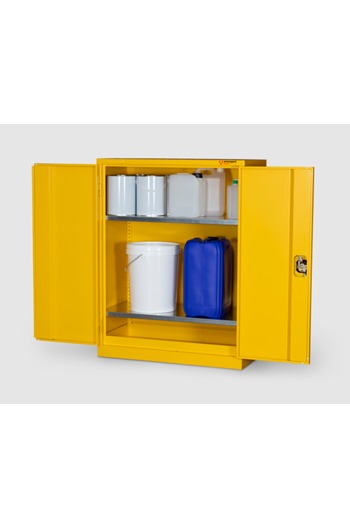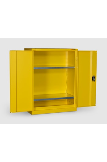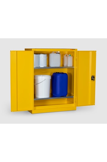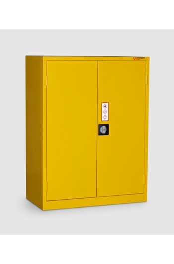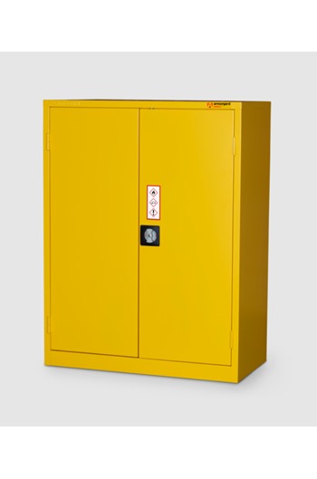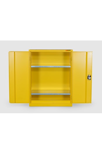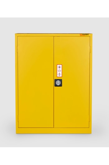 - BrandArmorgardProduct Weight41kgProduct ColourYellowProduct FinishPowder CoatedMaterial and Thickness 0.9mm SteelWidth900mmDepth 480mmHeight 1200mmInternal Dimensions (W x D x H) 809mm x 390mm x 1140mmSuitable For Indoor Storage of Flammables or ChemicalsQuantity of Keys2 KeysQuantity of Shelves 2 ShelvesAdditional Info