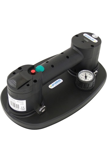 Designed for landscape contractors and tilers, this battery-operated suction lifter makes for easier ergonomic lifting, moving, and laying of absorbent concrete slabs, natural stones, tiles and other absorbent building materials
