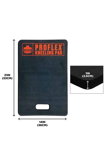 The ProFlex 380 Standard Kneeling Pad provides cushioning comfort and knee protection for static kneeling situations. This kneeling mat is made with thick nitrile rubber (NBR) closed cell foam which will keep its shape over time and won’t absorb liquids. The durable closed-cell foam is non-conductive, resistant to petroleum and silicone-free. A convenient built-in handle allows for easy transport and hanging storage, making it the perfect knee cushion for work on the job site, in the garage, the garden or at home.