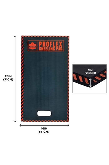 The ProFlex 385 Large Kneeling Pad is built with a beveled safety edge and provides cushioning comfort and knee protection for static kneeling situations on larger work surfaces. This kneeling mat is made with thick nitrile rubber (NBR) closed cell foam which will keep its shape over time and won’t absorb liquids. The durable closed-cell foam is non-conductive, resistant to petroleum and silicone-free. A built-in convenient handle allows for easy transport and hanging storage making it the perfect knee cushion for work on the jobsite, in the garage, the garden or at home