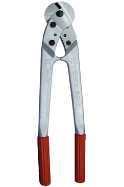The tool cuts wire rope up to 3/8" or 9mm thick, high tensile steel strands up to 7mm thick, stainless steel strands up to 6mm and extra tough wire rope or strands up to 5mm. In addition, it cuts electric cables of copper, aluminium or steel-cored aluminium, and aluminium or copper rods up to 9mm