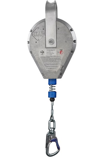- BrandIkar Safety ProductsProduct Weight11.00kgMaximum User Weight136kgEffective Working Length (EWL)18 mtrsTop Attachment Fixed Handle Anchorage Attachment PointBottom AttachmentAluminium Double Action HookCasing CoverAluminiumAvailable for HireNoConforms to EN StandardEN360 & EN341Certification SuppliedDeclaration of ConformityAdditional Info