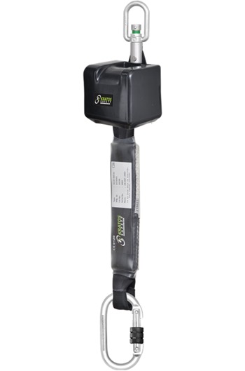 It's a seatbelt mechanism. If you fall it will activate as the belt extends . It feels fine when working and extends easily from normal working around. You could buy a twist carib to easily attach to your harness. Delivery by 9am on a normal next day .