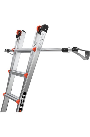 The Tip & Glide™ wheels help you move the ladder quickly from job to job. Like all Little Giant Ladders, the Conquest PRO enables you to work swiftly and effectively in multiple positions. Use the Conquest PRO in the stepladder, extension, staircase, 90-degree depending on the needs of the job. The inner and outer ladder stile assemblies separate to form two trestles for a time-saving scaffolding system, which an optional telescopic plank helps you achieve