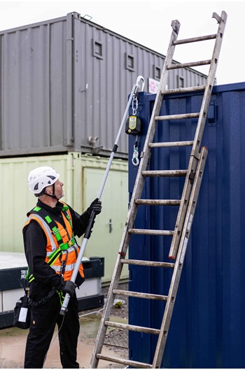 The Lyon Reach Pole is primarily intended to aid the remote connection of the Lyon pick off rescue kit to a fallen worker. It is especially useful in situations where the casualty is suspended from a deployed fall arrest lanyard, providing the option for recovery without the rescuer having to descend to the casualty