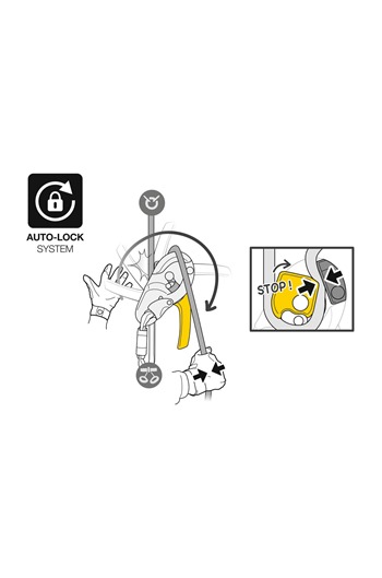 - The AUTO-LOCK system allows users to easily position themselves at a workstation without having to manipulate the handle or tie off the device: as soon as the user releases the handle, the rope is automatically locked in the device. The automatic return system on the handle limits the risk of the device getting accidentally snagged