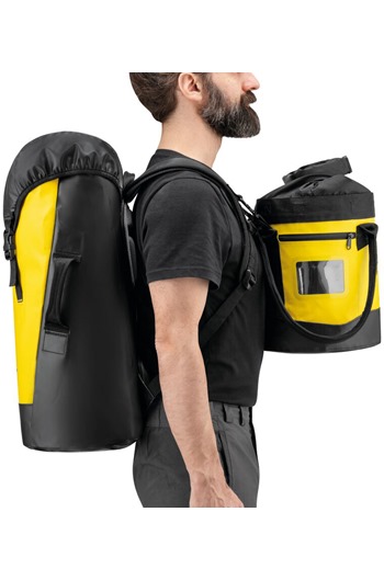 - BUCKET rope bag can be connected to the shoulder straps and carried in front