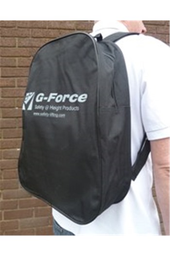 Black polyester fabric zip up back pack perfect for storing all of your fall protection products.