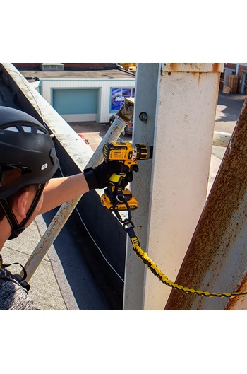 This tool lanyard comes with a 130mm choke loop one end and a 10mm swivel double action karabiner at the other. When working at height dropping tools can prove fatal, using a tool lanyard to tether the tool to an anchor point helps to prevent this from happening
