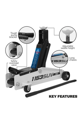 - Sealey 1153SUV 3tonne Long Reach High Lift SUV Trolley Jack (Net Weight Per Item: 19.00kg):Quantity:1+(£122.10 inc VAT)