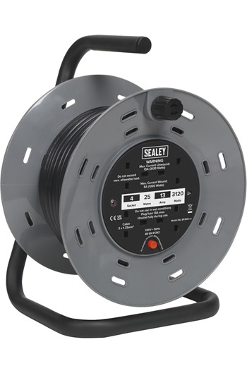 - Sealey BCR25 Cable Reel 25mtr 4x 230V 1.25mm² Thermal Trip (Net Weight Per Item: 3.62kg):Quantity:1+(£79.18 inc VAT)