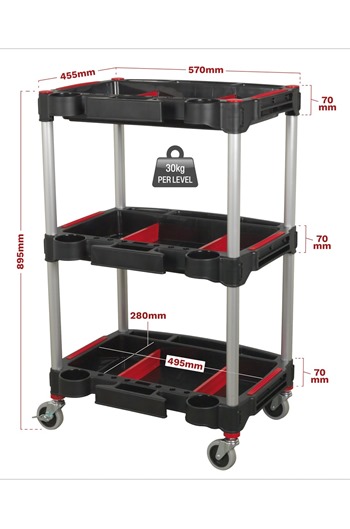 - Sealey CX313 Workshop Trolley 3-Level Composite with Parts Storage (Net Weight Per Item: 5.24kg):Quantity:1+(£112.50 inc VAT)