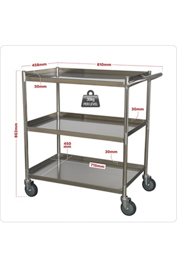 - Sealey CX410SS Workshop Trolley 3-Level Stainless Steel (Net Weight Per Item: 14.79kg):Quantity:1+(£290.34 inc VAT)