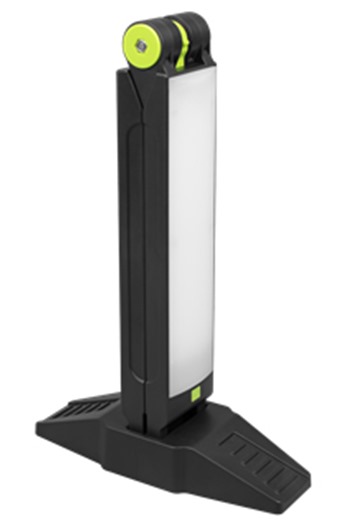 FOLDING FLOODLIGHT - Can either be placed into the stand folded to illuminate both sides of a room or extended to create one long floodlight