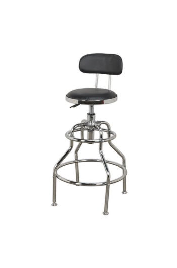 - Sealey SCR14 Pneumatic Workshop Stool with Adjustable Height Swivel Seat & Back Rest (Net Weight Per Item: 8.00kg):Quantity:1+(£128.10 inc VAT)