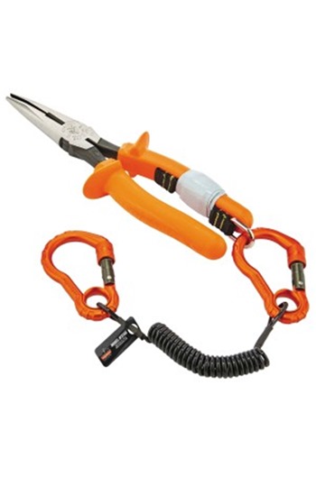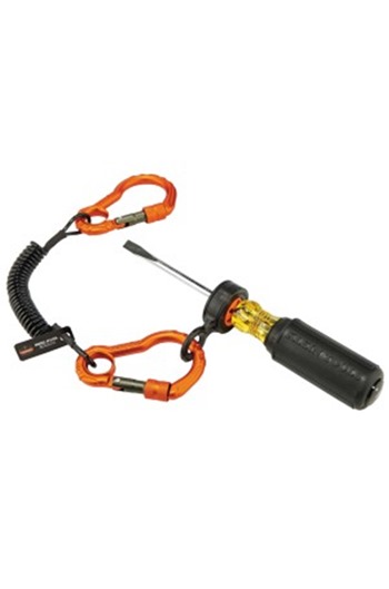 The Squids® 3166 Coil Tool Lanyard with Dual Carabiners is compact and used to tether small hand tools, PPE like hard hats or even mobile phones and tape measures to prevent falling objects when working at heights