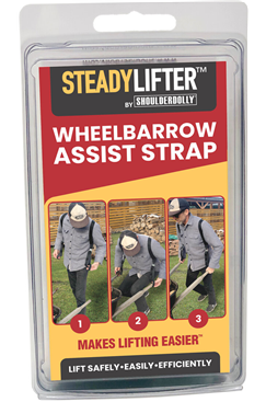 The Steady Lifter is a light weight harness to assist in lifting, stabilizing and moving heavy loads with your wheelbarrow