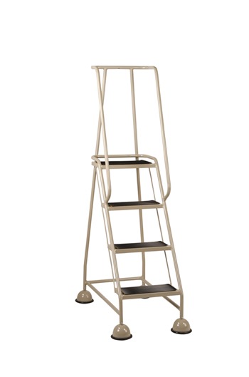 Fitted with dome covered spring loaded swivel castors which retract when weight is applied to the steps, giving firm contact with the floor. Dome covers have a double rolled bottom edge together with a protective cover strip and grey non-marking tyres