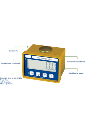The integral display eliminates the need for a separate display or cable assembly that can be easily damaged. Applications include the measurement of loads associated with the testing of hydraulic presses, cylinders or jacks