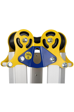 The tripod head is fitted with three ball-bearing polyamide rollers to smoothly guide the wire rope from lifting or fall arrest equipment mounted on the tripod legs