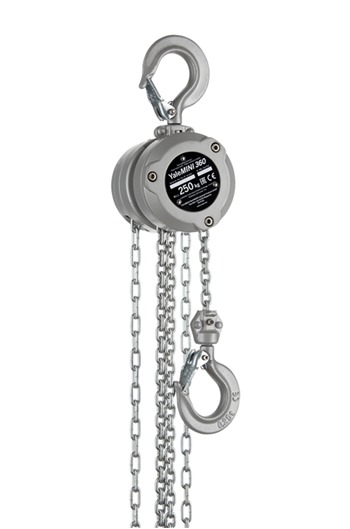 The new YaleMINI360 is made of die-cast aluminium, is very light weight, and easy to carry. It is the smallest of all Yale hand chain hoists and it is compact in design with a 360° rotating hand chain wheel cover that ensures a high level of safety, as it is possible to work outside of the danger zone
