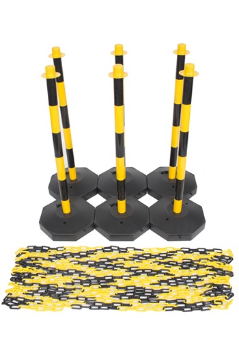 Yellow & Black Plastic Chain Post Set (x6) with 15mtrs of Chain